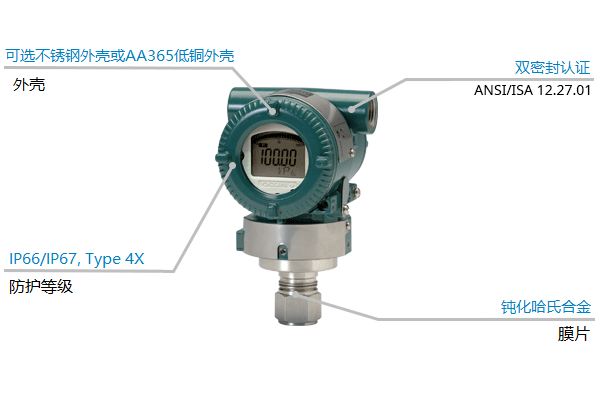 堅固耐用的構造可以幫助您的工廠減少故障。四螺栓保壓設計,DPharp數(shù)字傳感器,特氟龍涂層316L不銹鋼法蘭墊圈,ANSI / ISA 12.27.01認證雙重密封 - 所有的設計特點都為延長變送器的使用壽命。