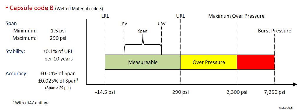 A,B或C膜盒 | 7,250 psi(50 MPa) |